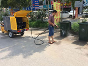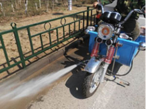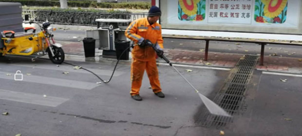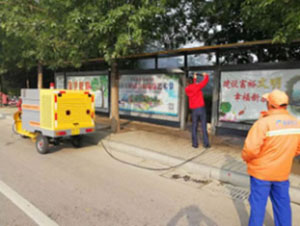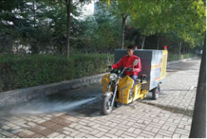 1、人行道沖洗:車輛體積小,運動靈活,配置各種角度噴頭,沖洗角度可360度任意調整,可上人行道沖洗,也可在人行道下方沖洗,相比人工打掃效率高出數倍,效果更好。